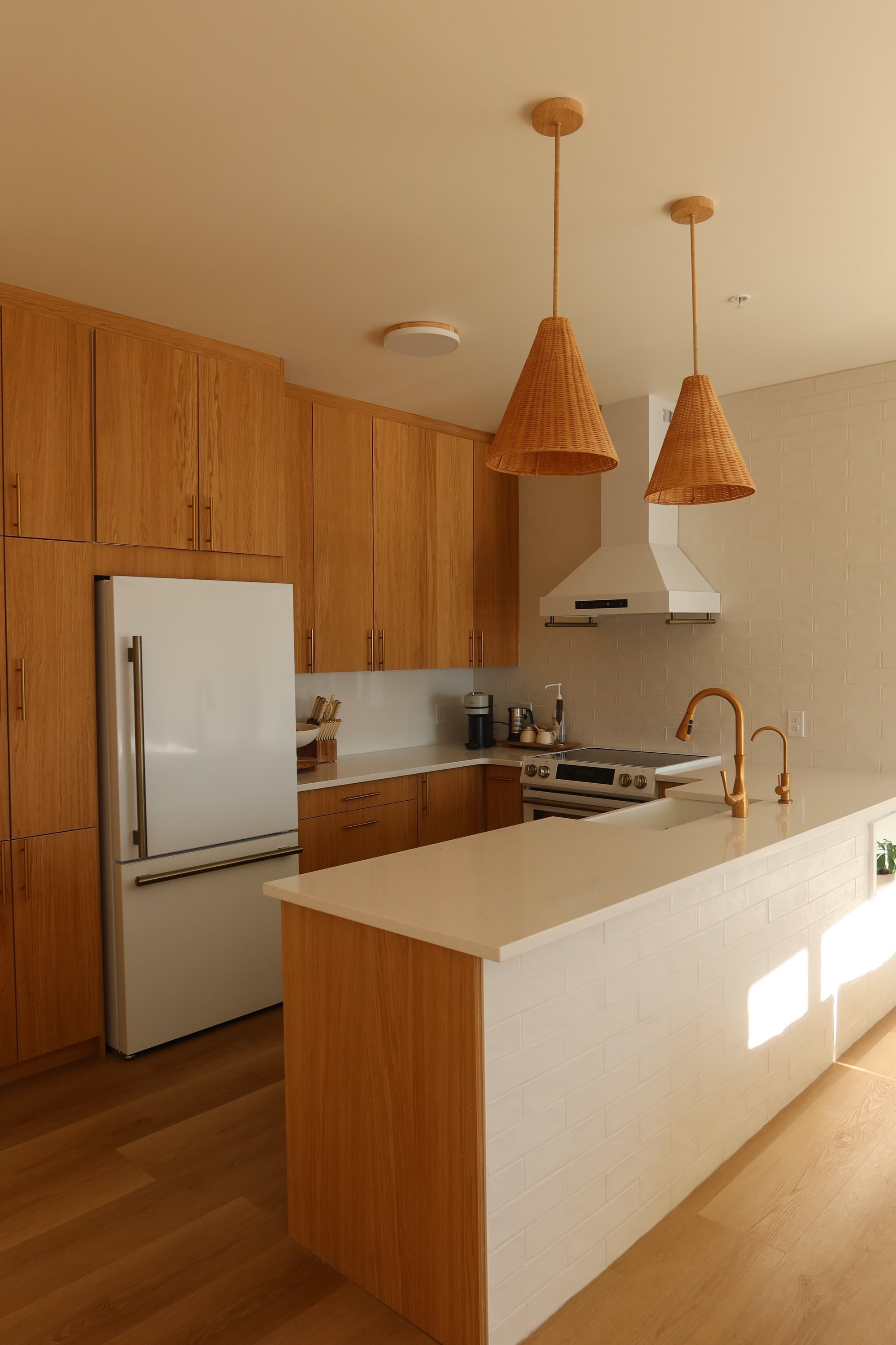 Zoe Honsinger, @zoehonsinger, is a pro DYI-er and content creator. This space features our Euro Slab cabinets in Shinnoki Veneer Natural Oak.